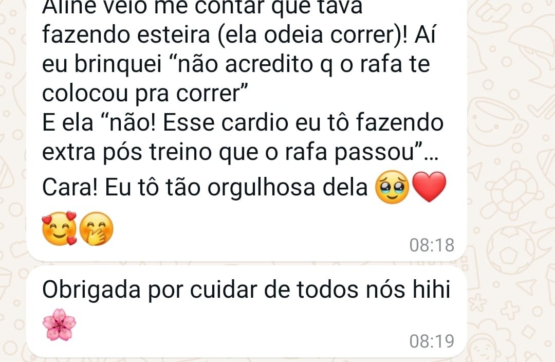 Você escolhe se quer funcional ou musculação, e eu ajusto seu plano semanal ou mensalmente, conforme seu progresso.