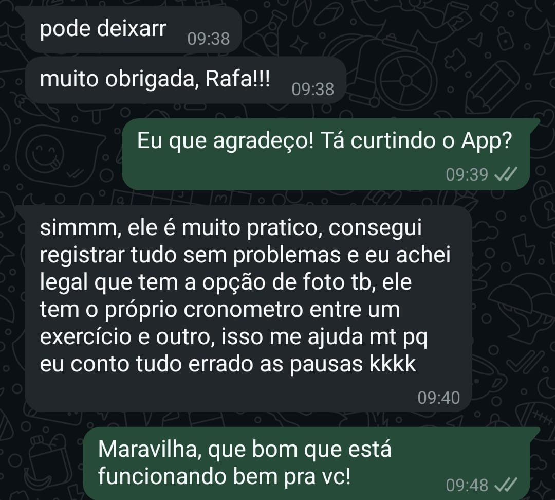 Você vai usar meu app exclusivo pra acessar os treinos, assistir aos vídeos explicativos e receber feedbacks em tempo real.